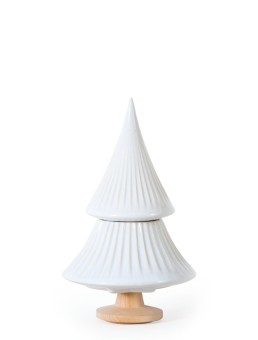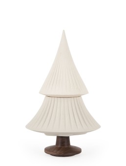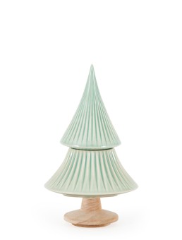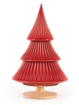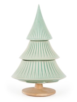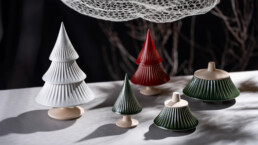 “A Árvore e o seu Zingamocho” criada e manufaturada em território Caldense, é composta por um jogo de peças em grés fino, banhadas manualmente em vidrados translúcidos corados, enriquecidos com peças de madeira de tília, torneadas e carimbadas manualmente, que assumem a função de tronco da árvore. Permitem a construção do popular símbolo natalício: o pinheiro.