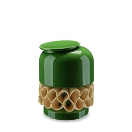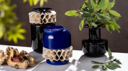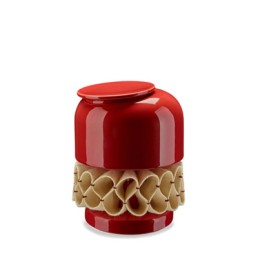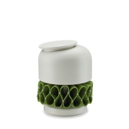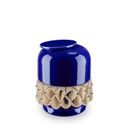 “A Gola de Rufos” criada e manufaturada em território Caldense, é composta por uma jarra faiança, vidrada manualmente, segundo o uso da tradição da técnica manual de imersão e aspersão. É ornamentada com uma gola de burel, inspirada no modelo de rufos do Séc. XVI, feita à mão por uma artesã portuguesa especializada. A gola de burel permite a limpeza a seco.