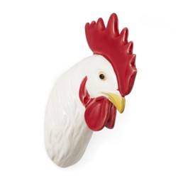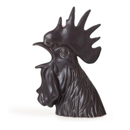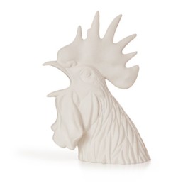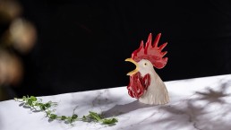 “O galo que perdeu a cabeça” criado e manufaturado em território Caldense, é composto por uma peça decorativa de parede ou de pousar sobre uma mesa. Produzida em grés e disponível em três versões: grés natural, preto mate e outra pintada manualmente segundo a técnica da pintura a vidro. Peças feitas à mão, podendo apresentar pequenas variações.
