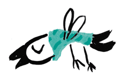 Aos que escolheram voltar para morar no ramo mais alto da figueira, o menino agradeceu. Esperou paciente que construíssem o ninho enquanto imaginava que nome lhes havia de dar. Estava tão feliz com o seu chilrear luminoso, que resolveu pintá-los com as cores que moravam no seu canto. Escolheu os amarelos do dia, os negros da noite, o vermelho das frutas maduras. Durante dias e dias, foi pincelando uma a uma as aves que escolheram a figueira como morada. Chamou-lhes papa figos. Por isso os papa figos são amarelos como as cores do dia, têm asas e rabos escuros como a noite, bicos vermelhos de romã e fazem os ninhos nos ramos mais altos das figueiras. São tímidos, não se deixam ver e muitas vezes só os conseguimos adivinhar pelo chilreio que parece repetir o dizer do menino: